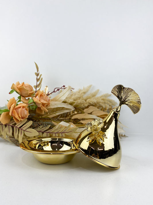 Bonbonnière du luxe décoratif doré antique design élégant et raffiné en cuivre