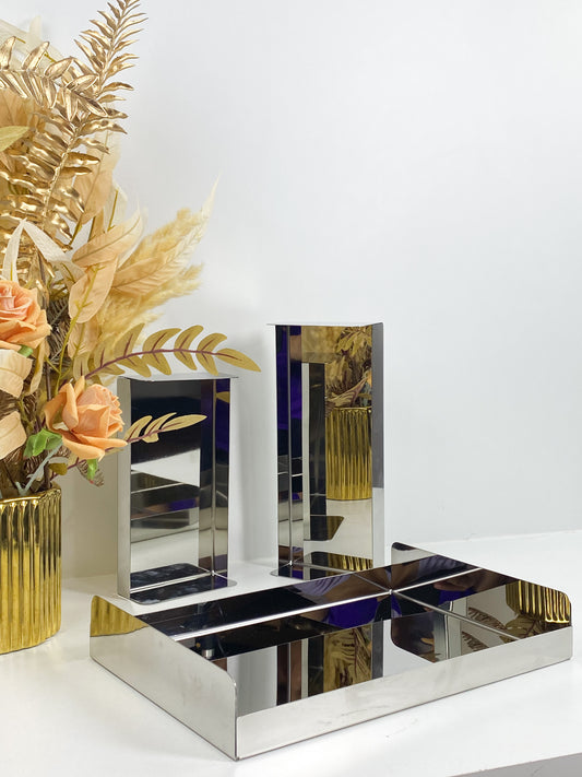 Set de plateaux et bol à fruit sec -argenté brillant - 5 pièces
