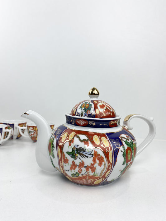 Service à thé en porcelaine décoré de motifs de papillons et d'une cage à oiseaux