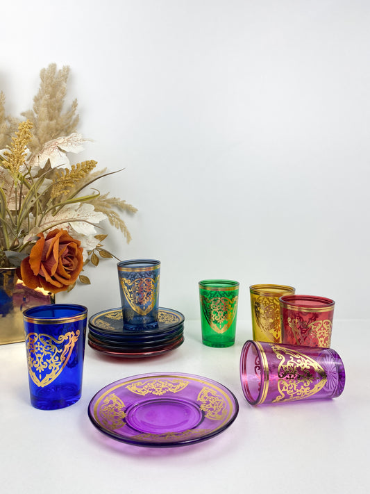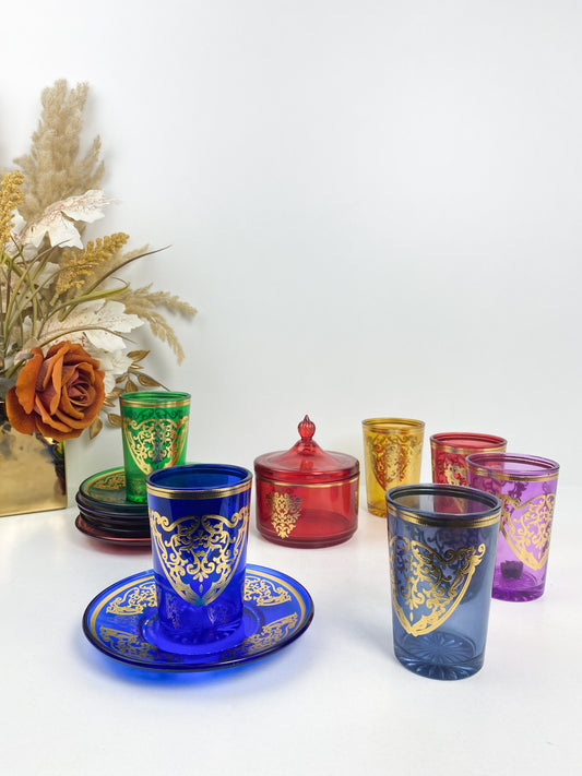 Set de 12 verres à thé avec 12 sous tasses et sucrière