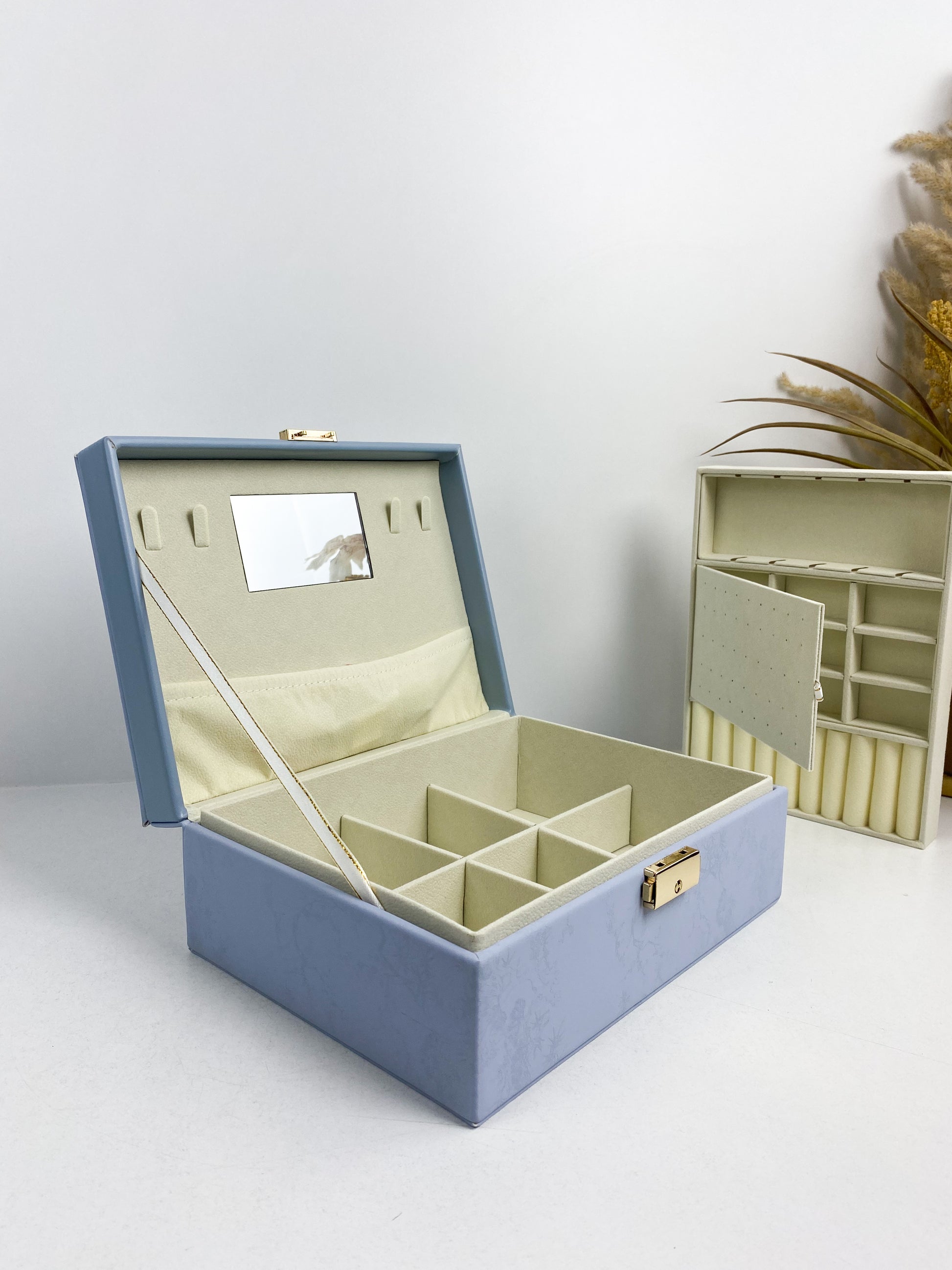 - Organisez et protégez tous vos bijoux essentiels avec cette boîte à bijoux polyvalente. Conçue pour accueillir colliers, boucles d'oreilles, bagues, montres et autres accessoires, elle est idéale pour un rangement soigné à la maison ou en voyage. Compacte et élégante, elle vous permet de garder vos trésors à portée de main tout en entraînant les nœuds et les pertes.