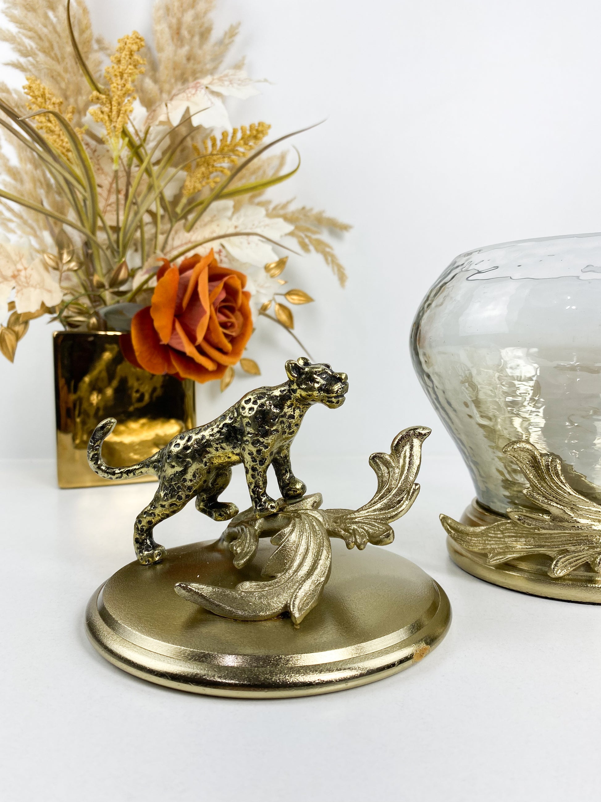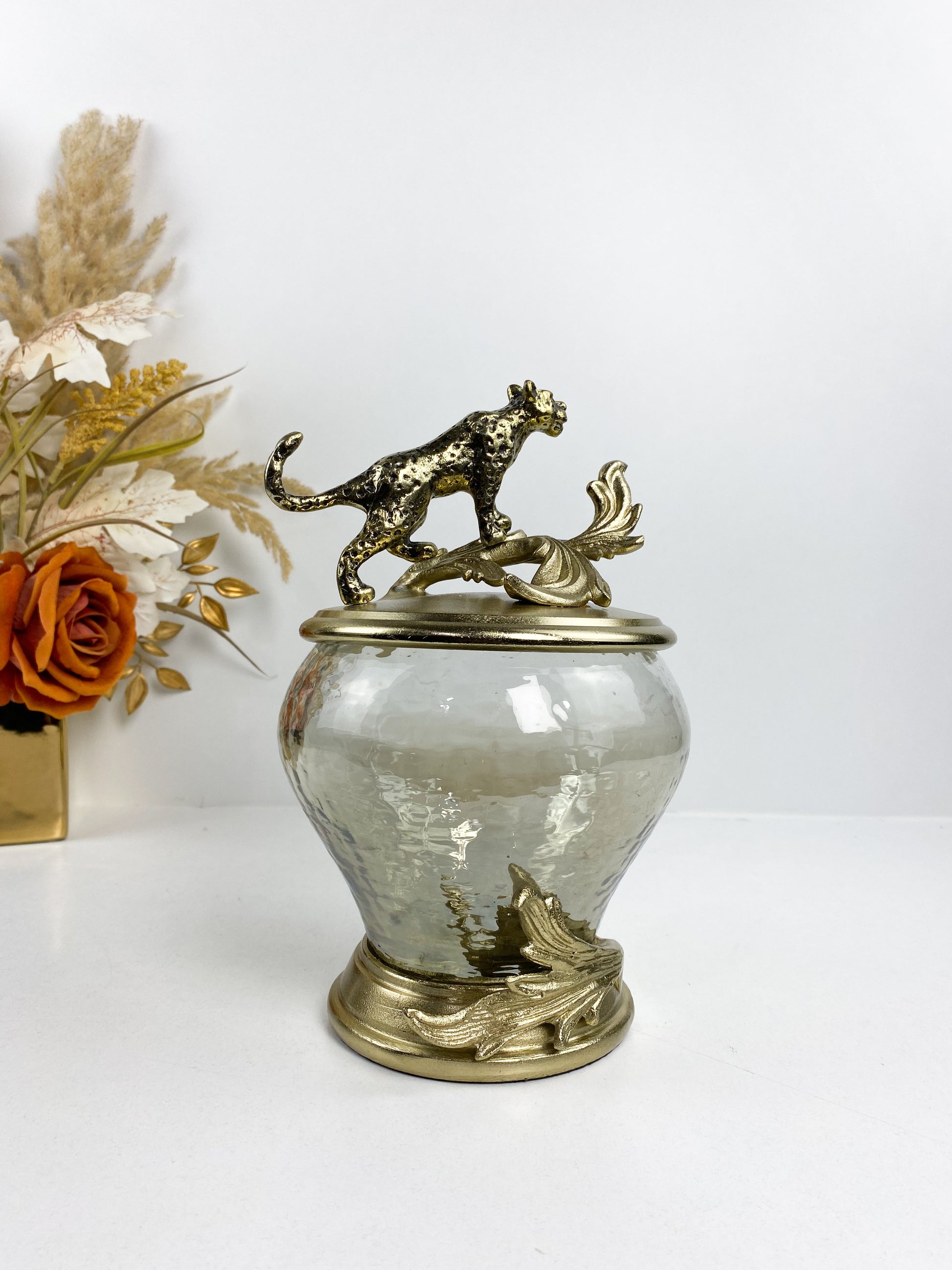 - Apportez une touche d'élégance à votre intérieur avec cette bonbonnière décorative à la finition dorée en cuivre. Son couvercle est orné d'un motif de tigre, ajoutant un charme unique et raffiné à votre décoration maison. Parfaite pour garder petits objets ou simplement embellir vos espaces, elle combine style et fonctionnalité avec délicatesse