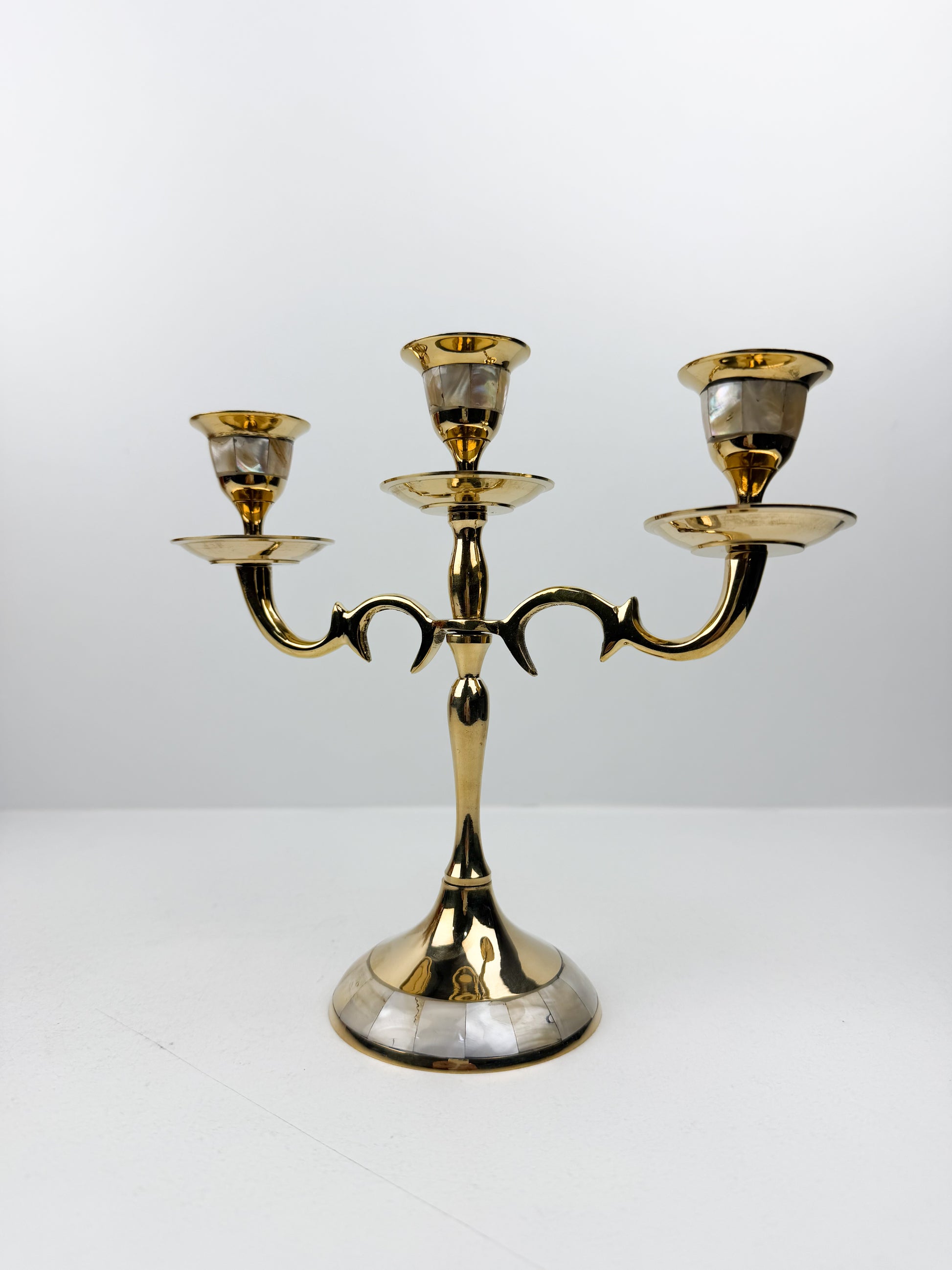 - Découvrez ce magnifique candélabre vintage en laiton doté de trois branches élégantes. Les incrustations de nacre ornant la base et les coupelles créent des reflets subtils et enchanteurs. Cette pièce de collection authentique apporte une dimension artistique à votre décoration intérieure, évoquant le prestige des intérieurs d'autrefois. idéal pour les amateurs d'objets anciens, il offre à la fois beauté esthétique et fonctionnalité. Un accessoire incontournable pour ceux qui apprécient l'authenticité et le caractère des pièces vintage.