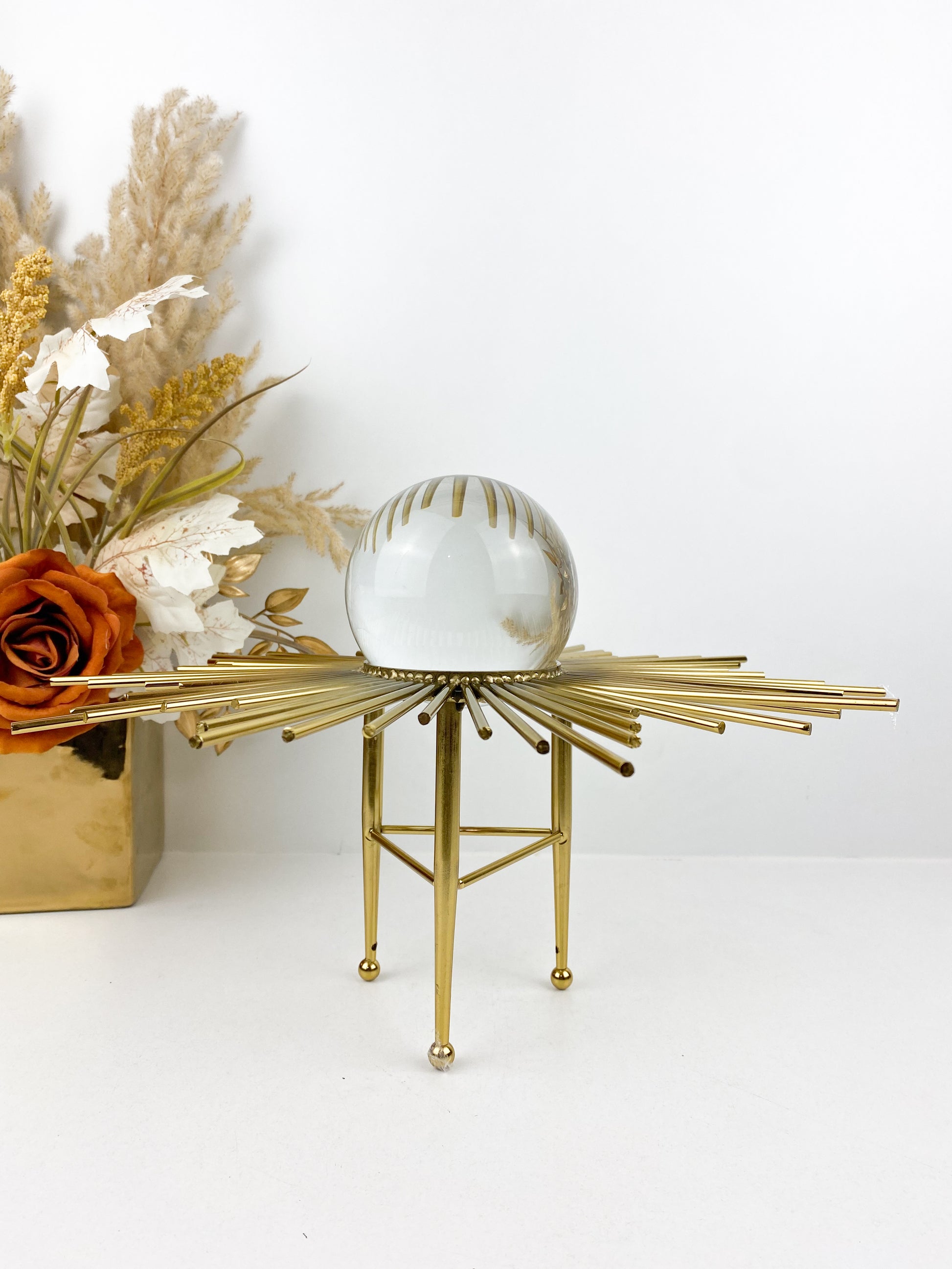 - Cette décoration en métal avec un globe en transparent apportera une touche de sophistication et d'exclusivité à votre intérieur. Le métal lui confère une robustesse et une élégance intemporelle, tandis que le globe transparent évoque le monde de l'art et de la littérature. Une pièce de choix pour un intérieur haut de gamme.
