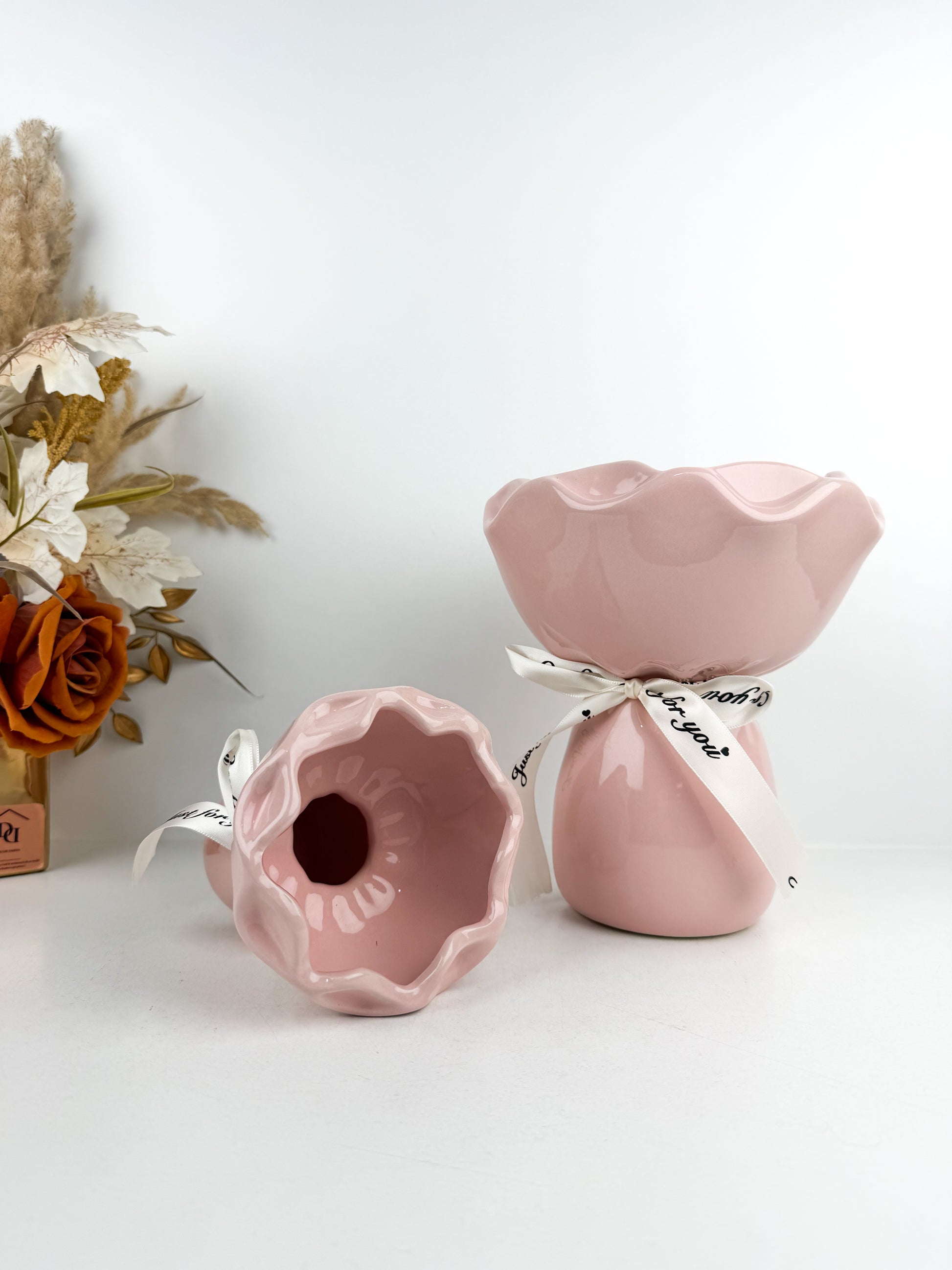 Duo vases en céramiques en forme de bouquet de fleur élégant rose