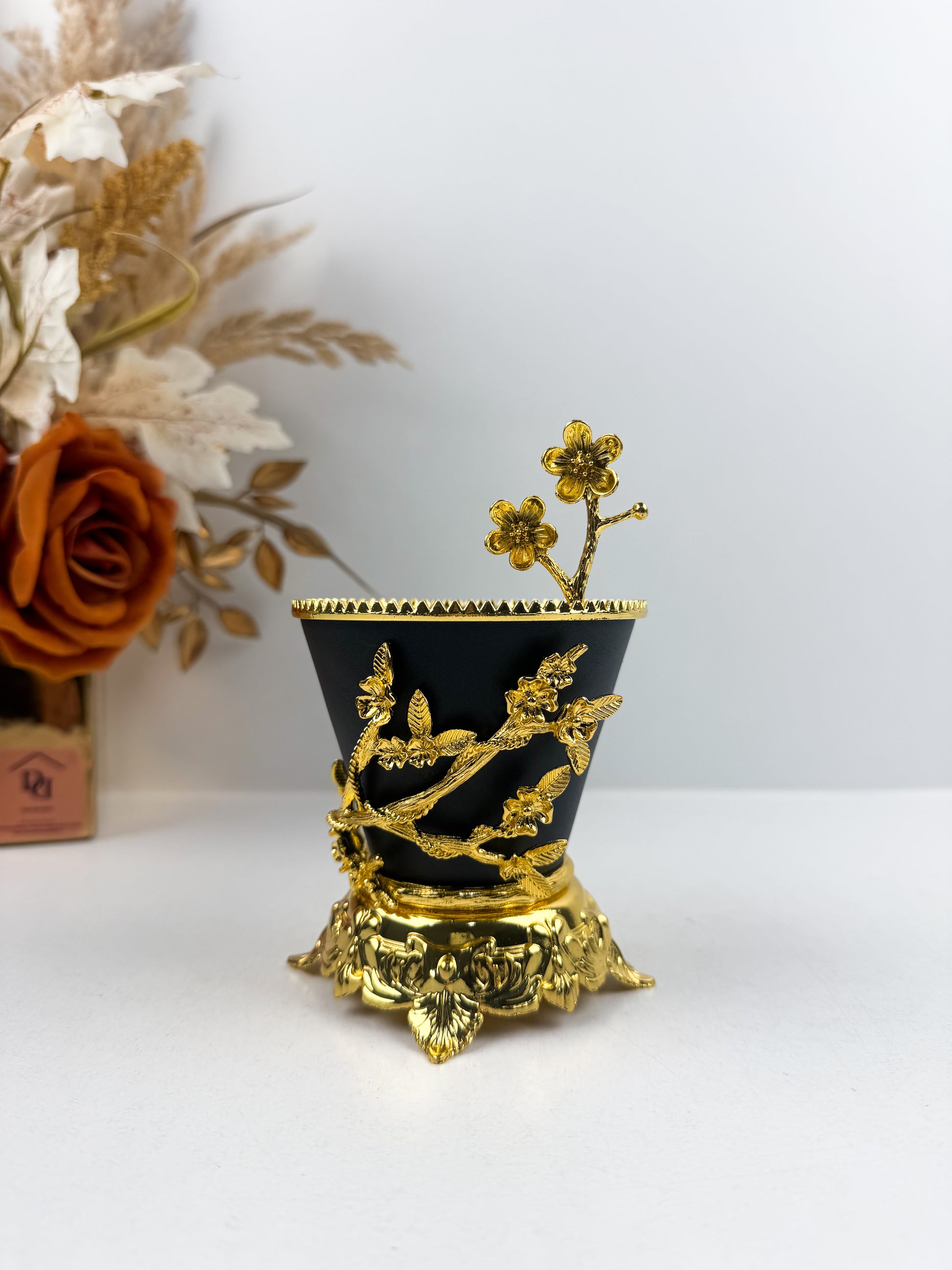 Encensoir noir avec des détails métalliques dorés chic