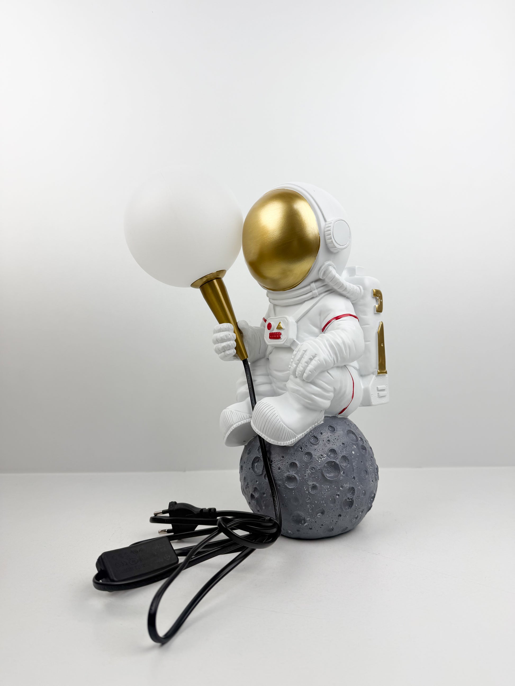 - Transformez votre espace en univers cosmique avec cette lampe de table astronaute captivante, cette figurine décorative allie style spatial et charme ludique, représentant un cosmonaute assis sereinement sur la lune, tenant un luminaire évoquant une planète brillante.
