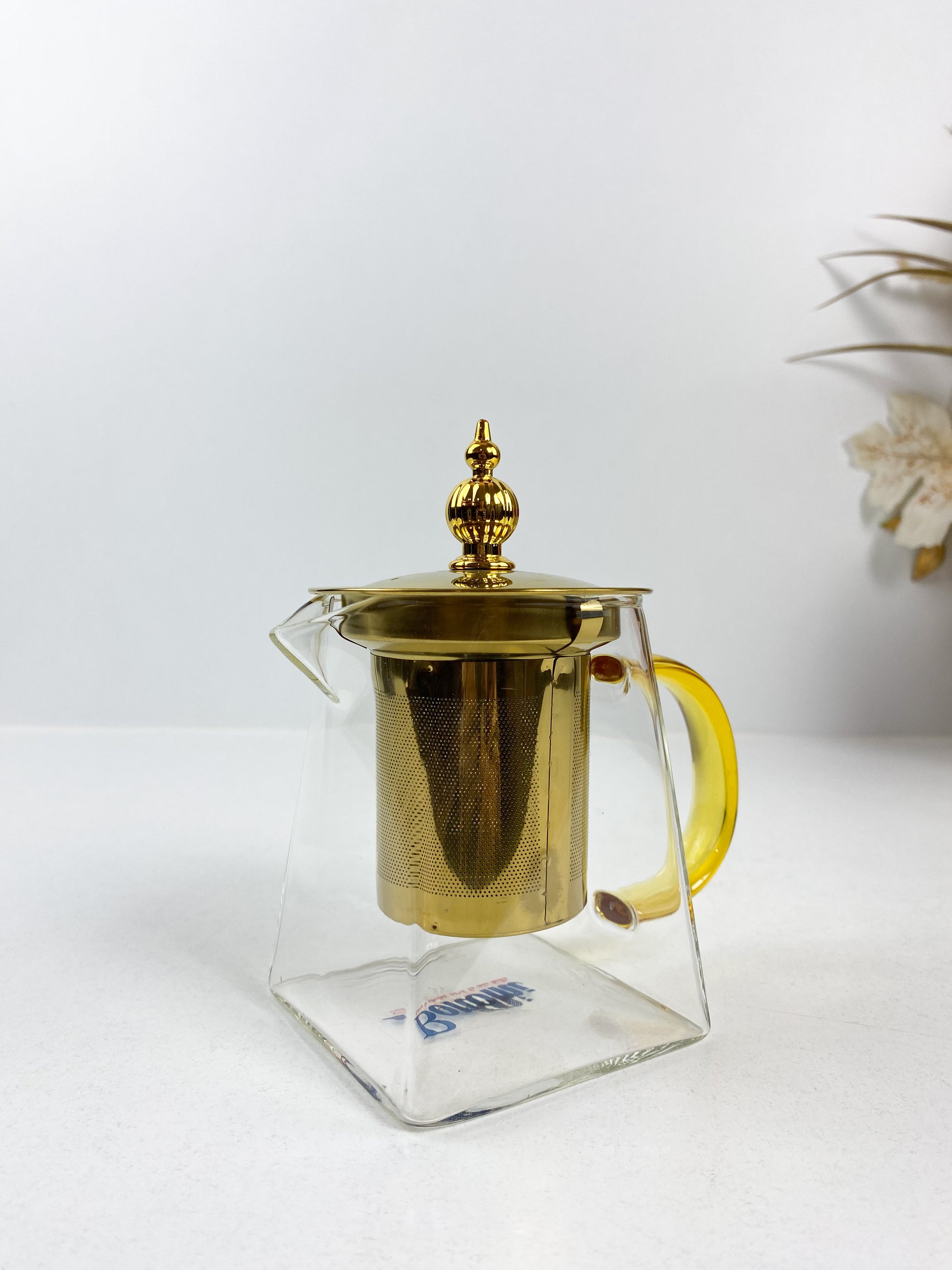 La poignée est en verre teinté jaune, contrastant joliment avec le reste de la théière. - Capacité : 350ML / 500ML