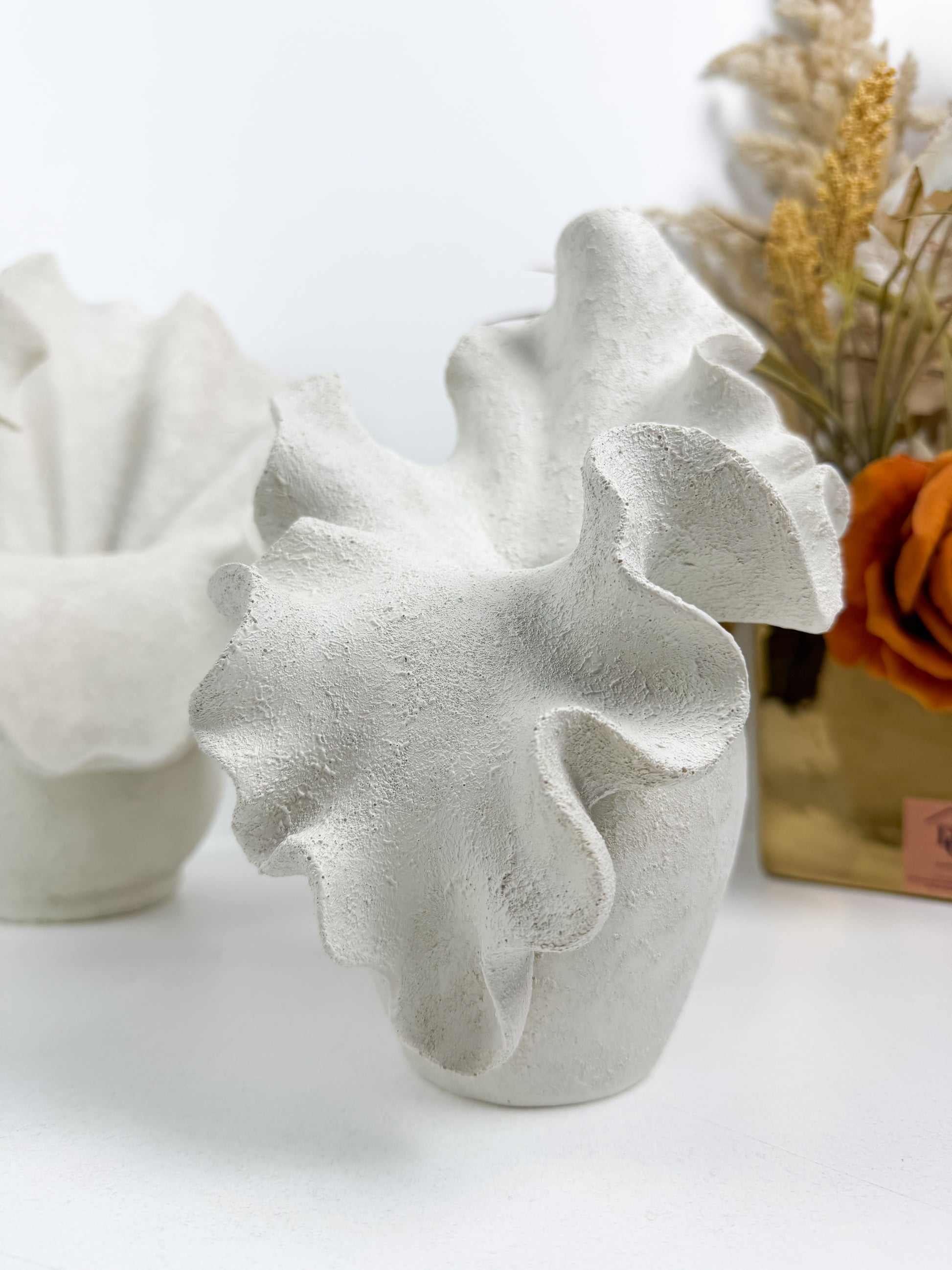 - Vase en céramique blanc aux lignes épurées inspirées par la délicatesse des pétales. Chaque pièce est façonnée à la main, révélant l'authenticité de son processus artisanal. Sa forme organique et élégante s'adapte à tous les styles de décoration intérieure, du minimaliste au bohème. Parfait pour mettre en valeur vos fleurs fraîches ou séchées, ce vase apporte une touche de raffinement et de nature à votre espace de vie.