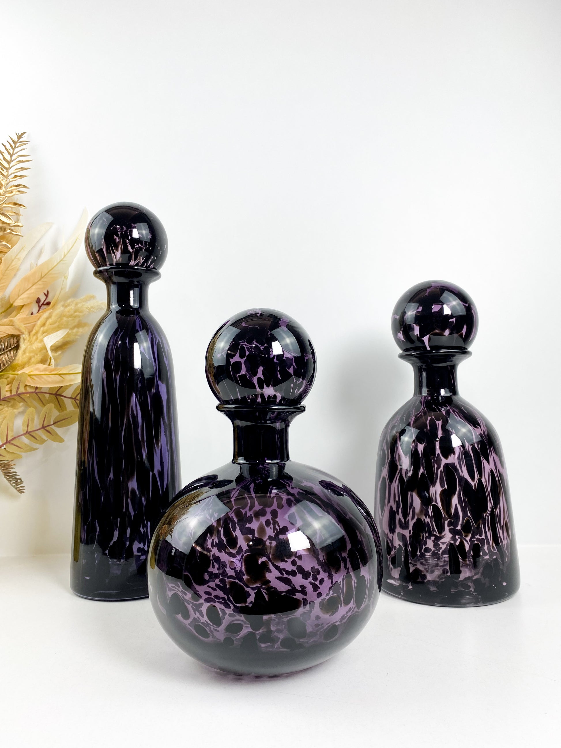- Ce vase en verre transparent coloré violet, décoré d’un imprimé léopard, est idéal pour créer un terrarium de fleurs ou exposer vos plantes avec style. Sa bouteille avec couvercle vous permet de protéger vos compositions tout en apportant une touche décorative originale et chaleureuse à votre intérieur. Un choix pratique et esthétique pour embellir votre espace en toute simplicité.